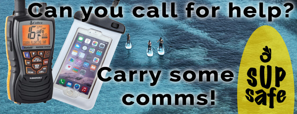 In many parts of New Zealand it is now a legal requirement to carry comms on your SUP, so that you can call for help if necessary. Which makes total sense, since every year our emergency services have to rescue paddlers being swept offshore by strong winds or currents. (Not just at the coast, there are many rescues on our lakes too). Being able to call for help is a vital part of your safety strategy. This is why it has now become mandatory in many regions of New Zealand, and this summer it will be actively enforced, with fines for non compliant paddlers.